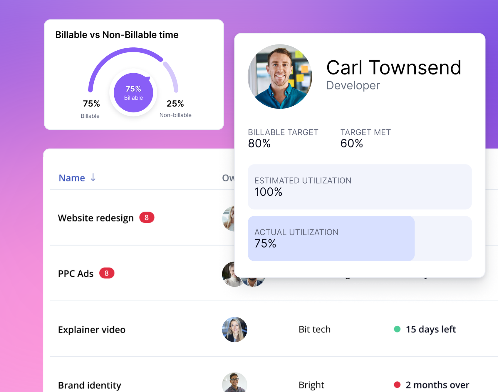 Get all the data you need in real-time to shift priorities without clashing against a project or pushing people over-capacity.